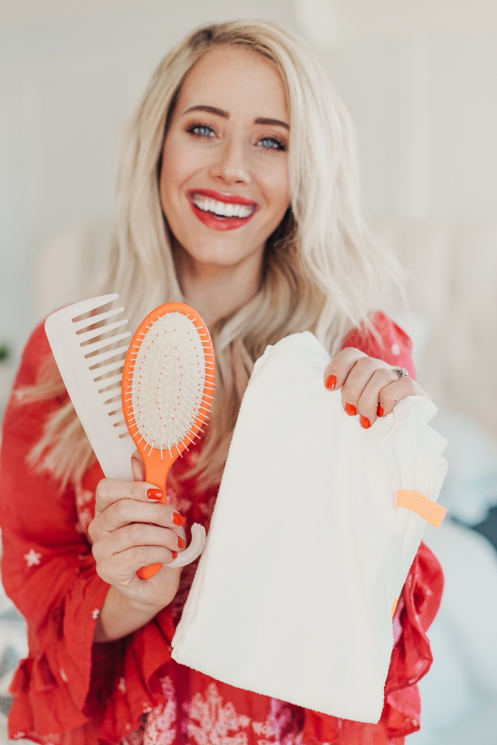 Hair Hack #12 – Make sure you hair isn’t sopping wet when you brush through it. Your hair is most vulnerable when it’s wet! I like to use a microfiber hair towel to press the water out of the hair, let it air dry a few minutes and then go through it with a wide tooth comb!