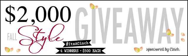 Today, I have joined Cinch and 34 awesome bloggers to bring to you a $2,000 Fall Style Giveaway! Cinch is giving 4 winners their very own $500 VISA giftcard! What better way to start the holidays?!