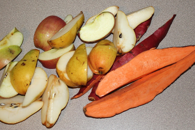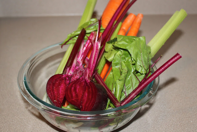 That’s beets, kale, celery, apples, carrots, parsley, lemons, yams, pears and cantaloupe. MMMMM!