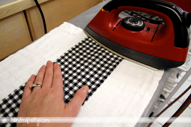 Step 2- Fold one side of your fabric and iron