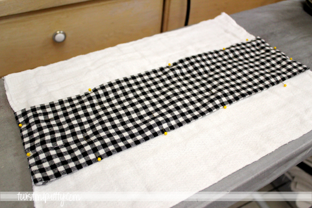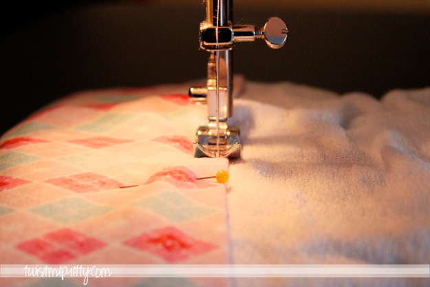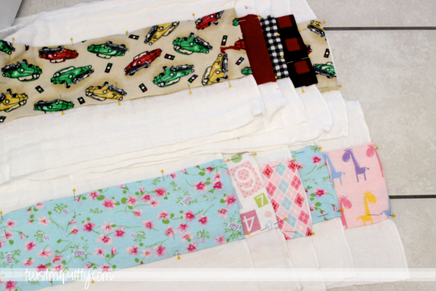 Step 5- Pin the flannel to your burp cloth