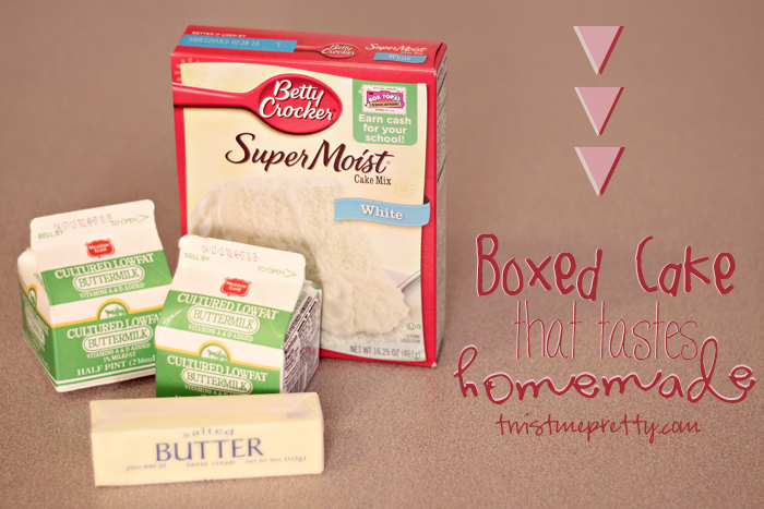 Follow the directions on the cake mix only replace the oil with butter and the water with buttermilk