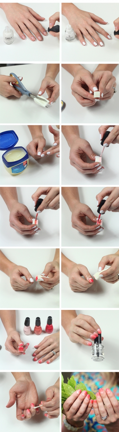 You guys. I’m obsessed. I don’t know what it is but I’m all of a sudden in love with nail art. I was really nervous to try the ombre because well, I’m not super skilled… yet haha! I thought it looked really hard and I knew for sure I was going to be all sorts of frustrated with it. WELL HOLY CRAP. IT’S soooooooooooooo EASY! If it weren’t for the fact that you have to re-apply polish to the sponge after each nail, it would literally take less time than painting your nails a solid color. Because you’re using a sponge and allowing air into the paint, your nails dry SUPER fast. No waiting around with this one- I love it! What do you guys think?!