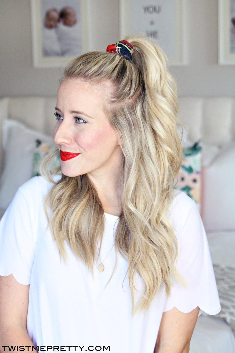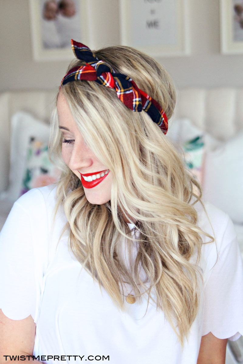 Well Target has gone mad for plaid! I’m not sure if you’ve noticed the trend but I sure found a bunch of it while running up and down the beauty section at my local Target. Plaid is e.v.e.r.y.w.h.e.r.e and a great way to get in on this trend is to add pops of it here and there through your accessories. Which btw, I found the cutest scrunchies, wire wraps, bun holders and elastic band accessories at Target that were all plaidified. I’m pretty sure that’s a word… it is now, ha! Today I’m taking you back and sharing four super easy and relevant hairstyles that look amazing with some of the accessories I found at Tar-jeh.