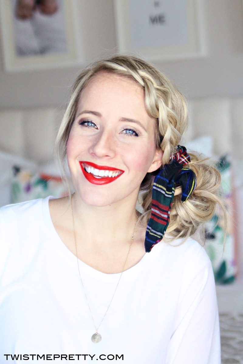 #4 All American. Inspired by classic American style, this is the perfect braided side bun adorned with a plaid wire wrap. Finish off the look with your favorite rolled jeans and a boyfriend button up.