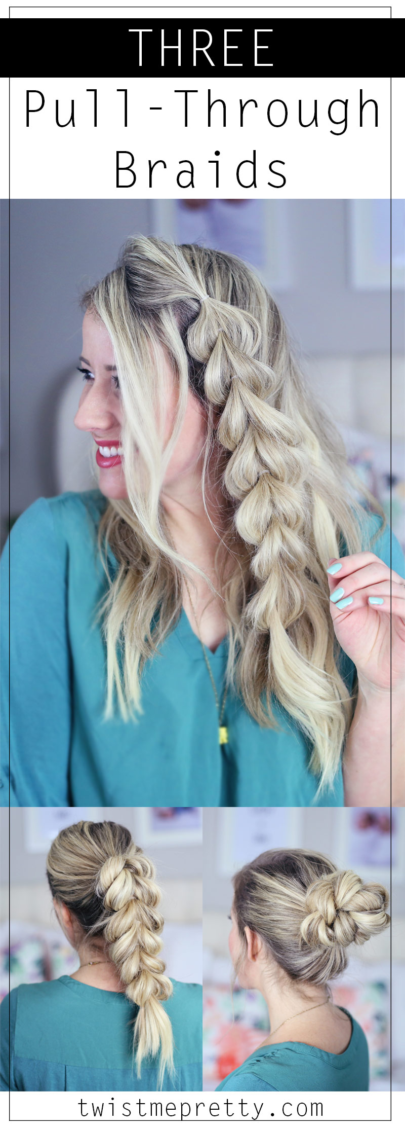 Well wow, without further adieu let me introduce you to today’s video… if you couldn’t tell by that massive image ^^^ it’s a few different ways to wear the beloved Pull Through Braid! I’ll be doing a part 2 and most likely 3 of this video in the near future… I had planned 10 styles in one video but my camera died on three and that would have made for one super long video so… I’m just rollin with it 🙂