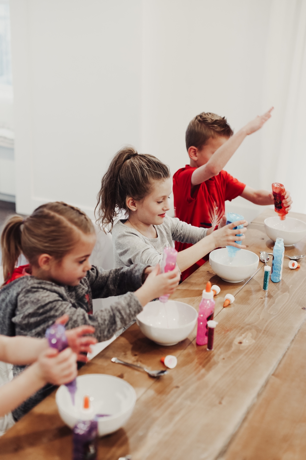 They had so much fun making slime together, and it wasn’t that messy!!! One of my favorite things about this activity was that my kids really got to take control! I was there to help them, but for the most part, they took over. They loved getting their hands dirty and spending time with their friends.