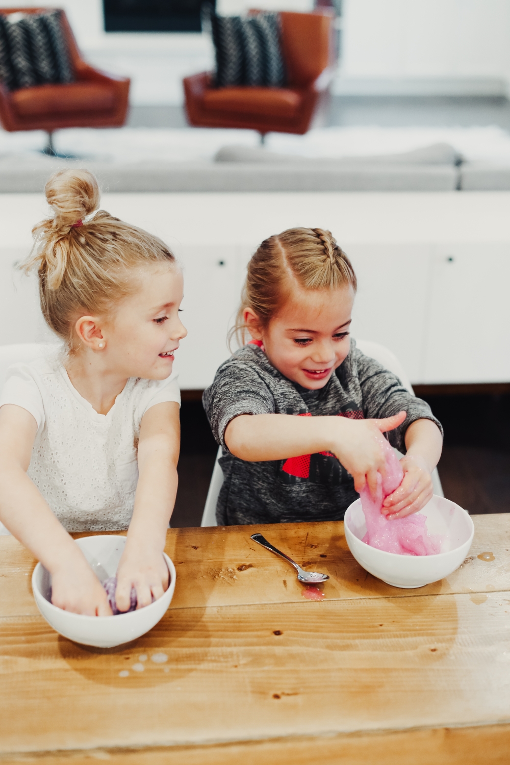 After they were done playing, they each got a baggie to put it in and then vowed to me they wouldn’t play with it on my couch or carpet haha!!! So far so good. So if you’re looking for a fun activity to do with your kids this weekend, give Slime a try. They’ll seriously think you’re the coolest parent alive!