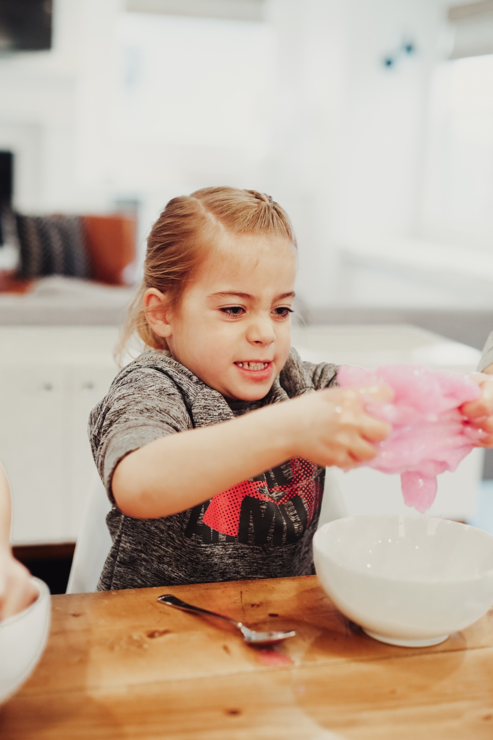 There are several different recipes for slime and I’m sure we will explore them all haha but today we’re sharing how to make 3 Ingredient Slime!!!! Savy liked to call it her “Unicorn Slime”! It’s 3 ingredients and so easy that I honestly let the kids just do it on their own as I monitored them putting in the right amount of ingredients.