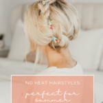 Hey ladies!! How’s your hair doing? I know it’s harder to manage in the summer days between the hot sun, pool days, and sweating it out at the gym. One of the best things you can do for your hair is to give it a break from heat. That means no flat irons, no curling wands, etc. I know, we almost live off of these! But, don’t worry, I’ve got my 5 no heat summer hairstyles you (and your hair) will love.