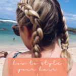 My first tip? Throw your hair in braids before you jump in the water! Boxer braids are my favorite, but pigtail braids are just fine too. Keeping your hair in braids will keep it from getting tangled and knotted from the movement of the water. After you get out of the water, keep your braids in until they are mostly dry and you’ll get beach waves for the rest of the day.