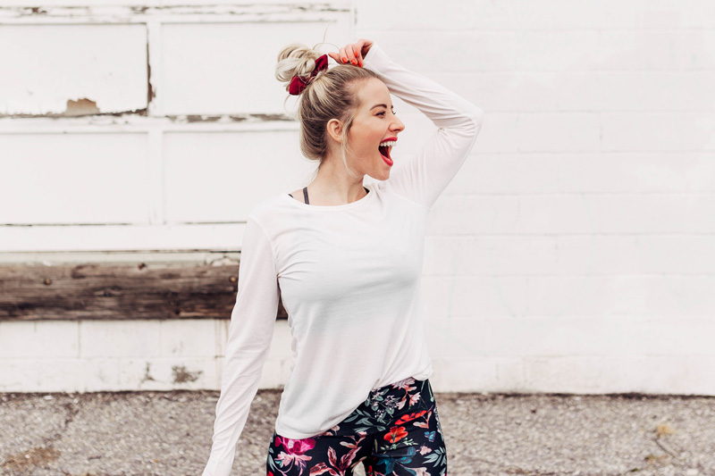 Outfit #2: Performance Top | Printed Leggings (floral is out of stock but here are some similar ones that are super cute too!)