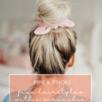 Have you jumped on the scrunchie trend yet? If you’ve bought some thinking you’ll use them, but haven’t yet, this post is for you! Or, if you just want more ideas for cute hairstyles, this is for you too! There are SO many positives to using a scrunchie for your hairstyles. Here are 5 ways to totally rock a scrunchie.