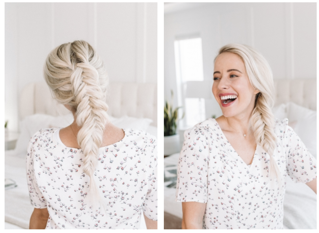 I feel like the fishtail braid gets a bad wrap because it looks so intricate and complicated. If I’m being 100% honest with you though, I think it’s the easiest braid to learn. Technically there are four pieces you’re dealing with but I like to look at it as only TWO. And once you learn the steps you’re like — for rel? That’s all there is to it?!