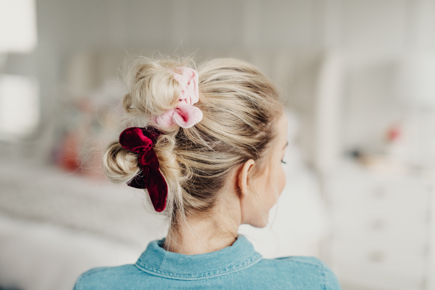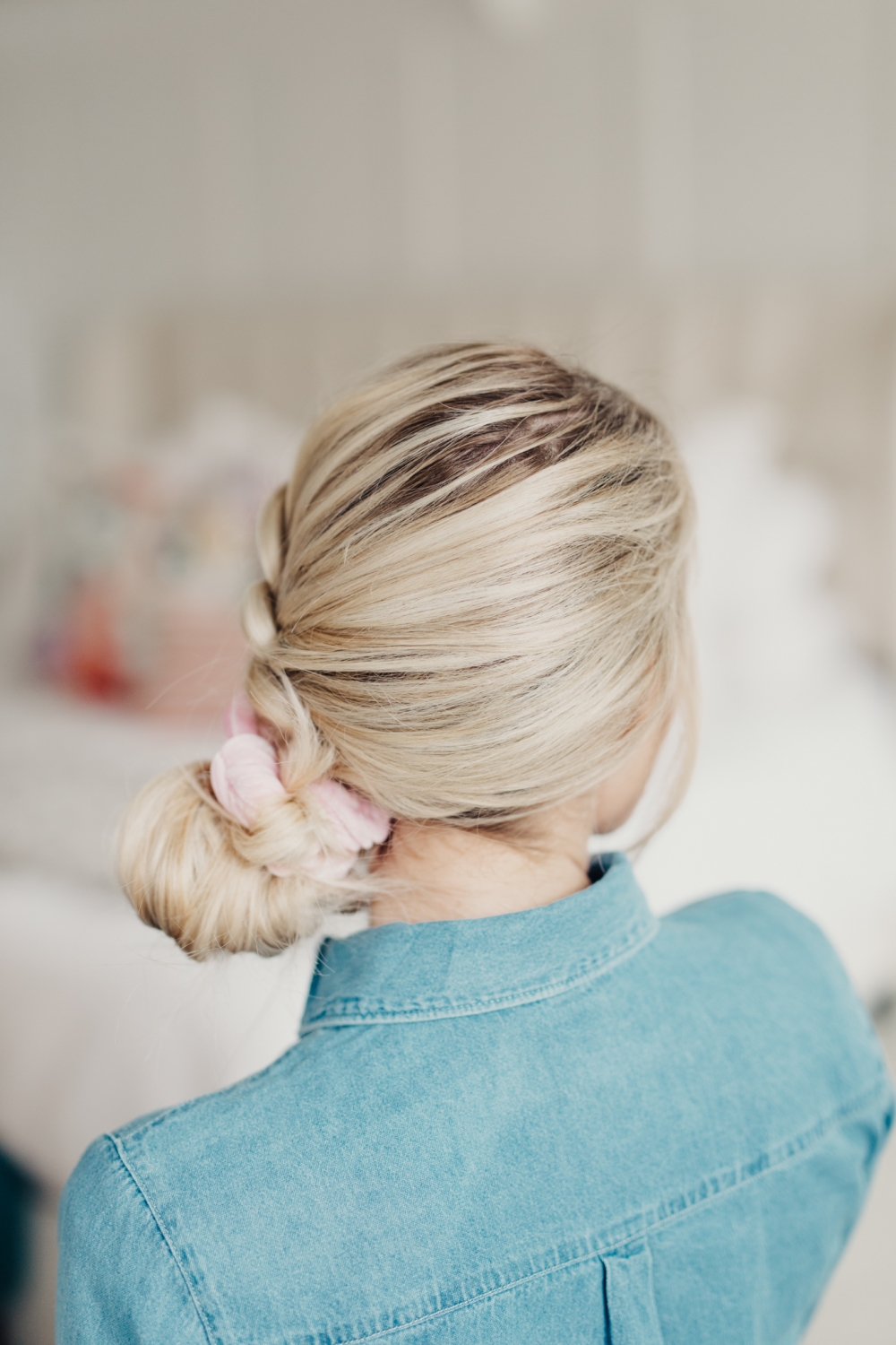 Scrunchies are great to use at night when you want to save your curls for the next day – check out hairstyle #2. Scrunchies are great if you have really long hair and the weight of it hurts your head when styling a top knot. I don’t know what it is, but I could wear a scrunchie all day and not feel a thing. Scrunchies are great when you need to put your hair up wet because they’re so soft and gentle on your vulnerable wet hair. Scrunchies are great when you want to be a cool hipster that does cool things…? Maybe? I don’t know. I feel like I’ve given you enough reasons to love the scrunchies. Now here is some proof in the hairstyles!