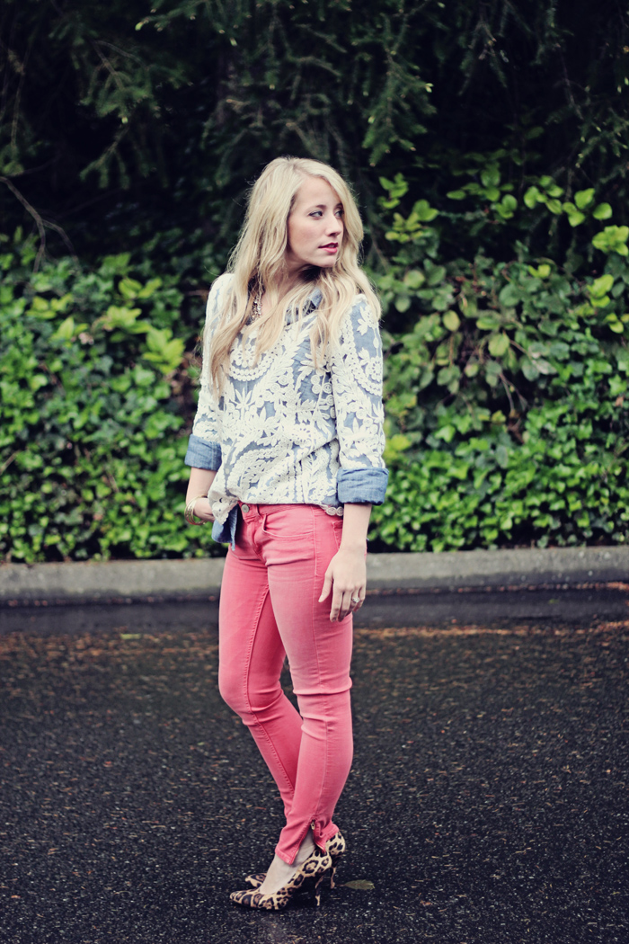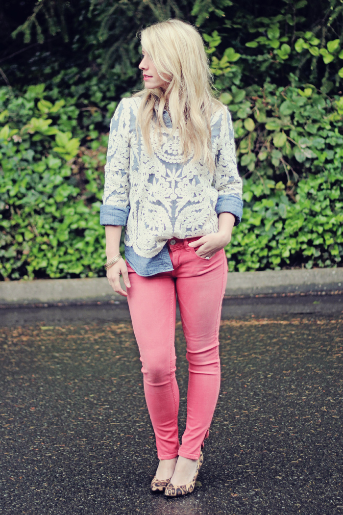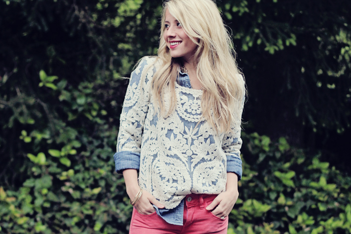 I love the lace top paired over the denim shirt…amazing!! I was hoping you lived in Provo so we could plan a play date with our kiddies:) Dang! Well, can’t wait to meet you in March!!!