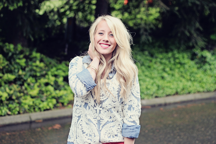 You are so darling! LOVE the denim under the lace! What a fun way to layer it! You are gorgeous Abby!