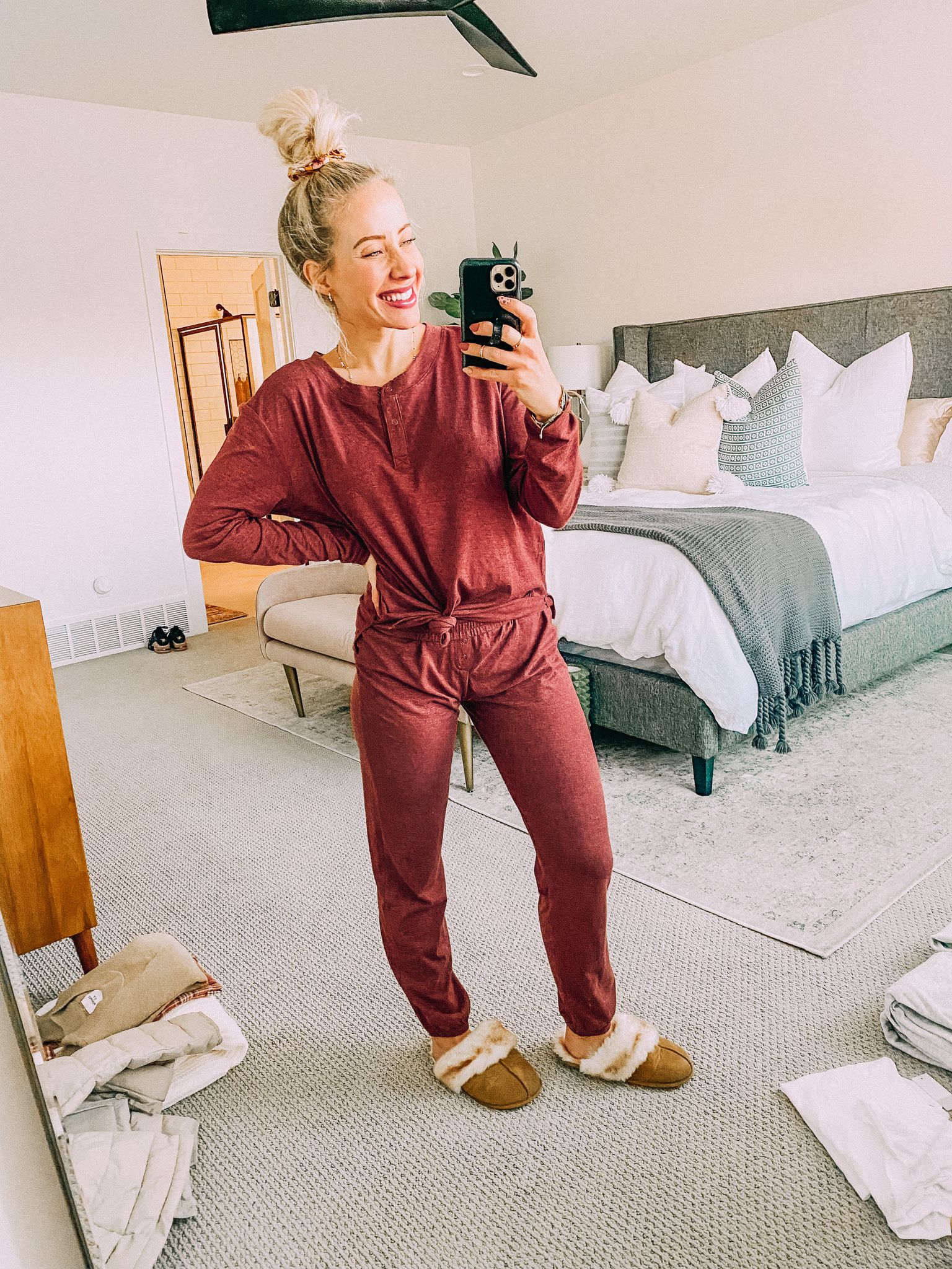 Thermal Loungers: Matching sweat sets are my jam always and forever. These thermal joggers are just as good as the top, but in pants version! The heather grey is SO good. The top and the bottom are sold separately, so I showed you another fun outfit with a these joggers and the awesome Abercrombie basic white tee. You’re welcome!