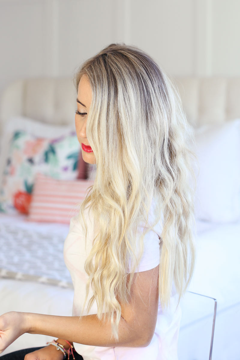 I’ve literally survived this summer because I’ve been showering at night after the kids are asleep and then letting my hair air dry. Not only has air drying my hair at night sped up my routine in the morning, but I haven’t been using as much heat so my hair is super happy with me right now. It feels really hydrated and healthy which is a BIG deal when you’re a blonde in the middle of summer!