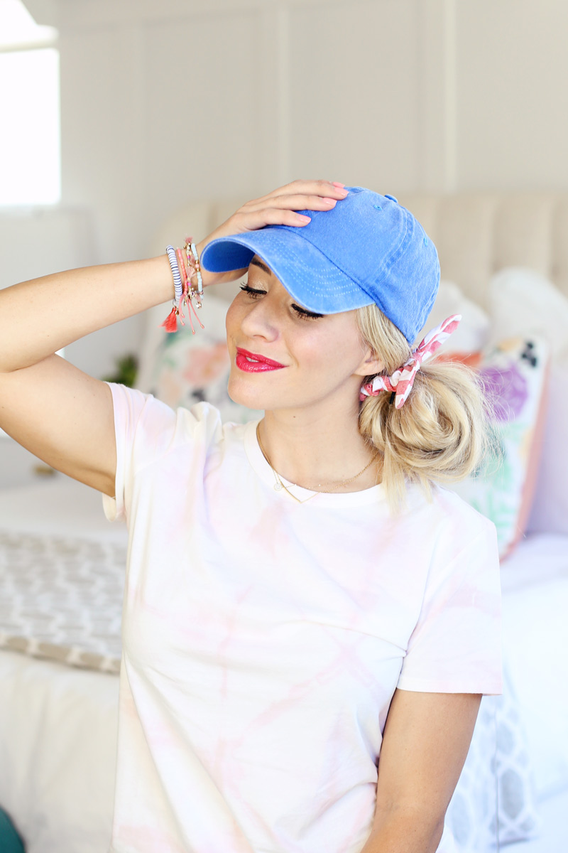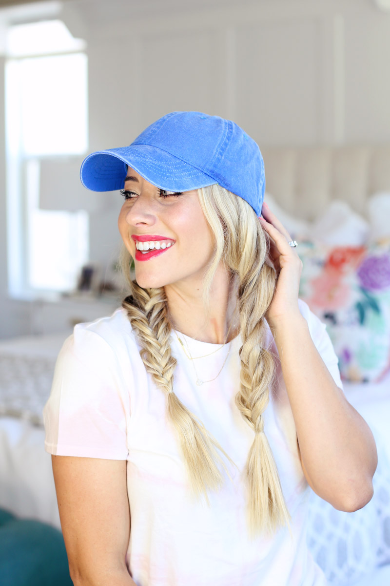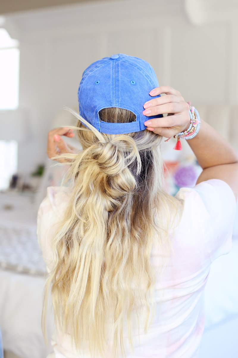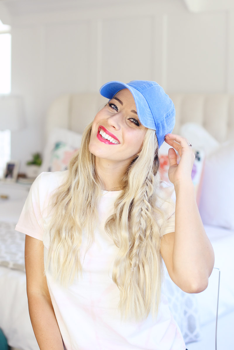 Now that we’ve chatted about the waves, I wanted to share a few of my favorite hat hairstyles. This summer I’ve been ALL about hats. Hats and SPF! I’m really working on my skin right now so I’m trying to keep it out of the sun as much as possible. Plus I feel like if I’m wearing a hat, I can keep my hair down and it’s always out of my face and I can get ready in a pinch and still look put together. Plus they are adorable. Plus you need one. haha! Okay okay, so let me just convince you by sharing 7 of my favorite hairstyles to wear with a hat.