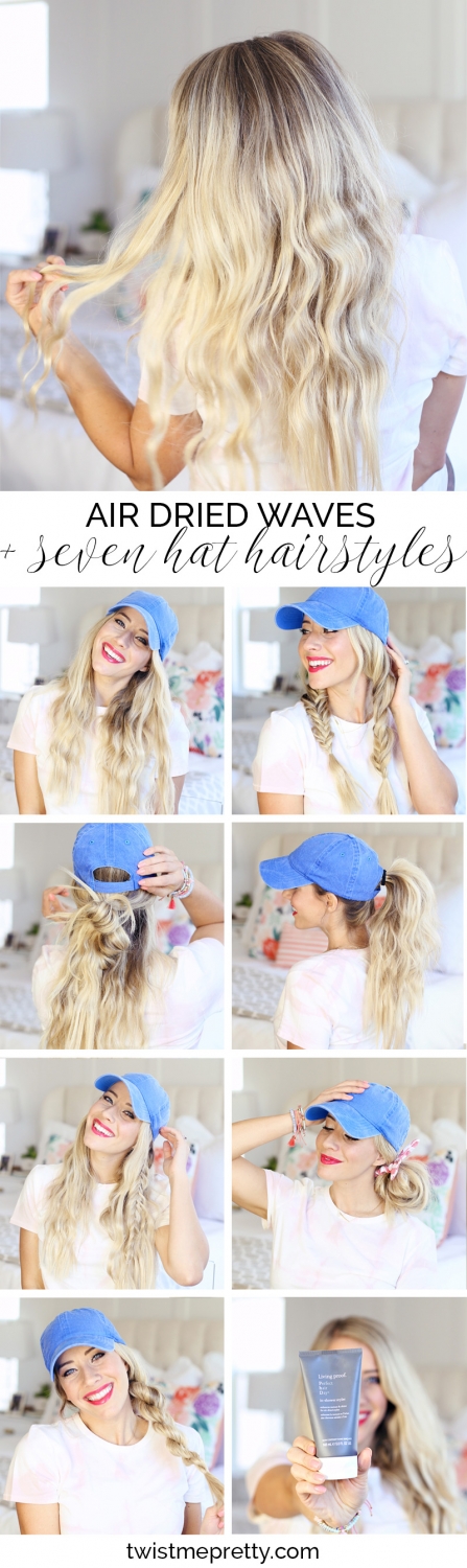 And that’s it! 7 hairstyles to wear with a hat + the prettiest air dried waves you’ll ever try. And honestly my waves would be a hot mess without the In-Shower Styler from Living Proof. So if you’re interested to ditch the heat tools, give your hair a break in this summer heat and try out some air dried styles, snag some so you’re not a frizz ball when you wake up in the morning!