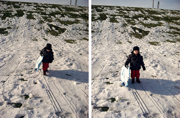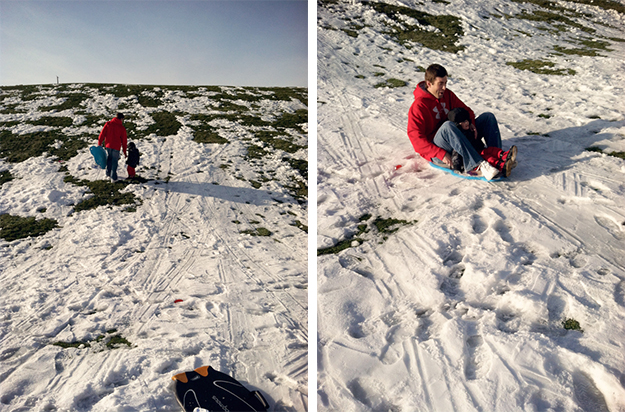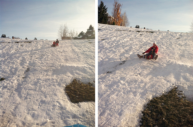 Just a few weeks ago we woke up to seven inches of snow. It seriously felt like Christmas. Everything was white and clean and the snow was soft and powdery. You better believe I ate some. It made me feel like I was six years old again. Days after the storm we finally got our acts together and took the kids sledding.
