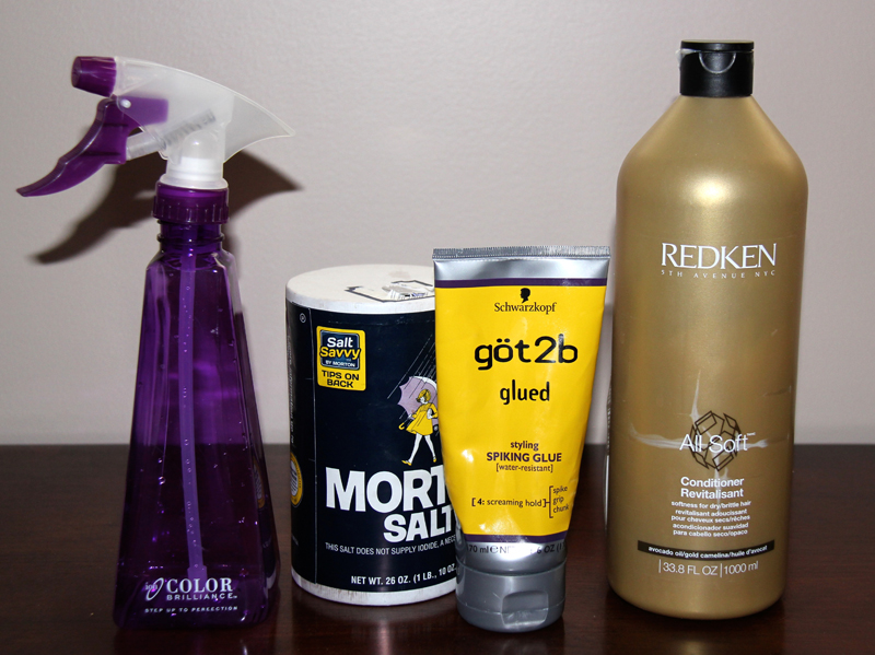 I was looking at buying some texturizing spray on Amazon and thought to myself- “Whatever. I’m not paying $30 bucks for this”!  So I looked at the ingredients and threw a little somethin’ somethin’ together.  This recipe has worked wonders.  Not only will it add tons of texture to your hair but it will give it that nice beachy look.  The second I sprayed the salty goodness on my hair it just beached right up!  It had tons of volume and body and while messy it was still fresh and natural looking.  Because there is a ton of salt in this spray I wouldn’t use it all the time as it can dry out your hair.  I put some conditioner in the recipe to counteract the salt but who knows if it’ll help.