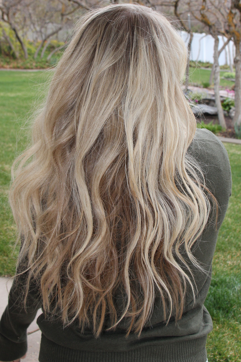 I curled my hair using a 1″ curling wand.  It’s a cheap hot tools curling iron that I transformed into a handy wand.  I just unscrewed the clamp.  After wrapping my hair away from my face around the wand and straightening the ends I sprayed a good amount of “beach in a bottle” in my hair.  Enough to feel it but not so much that it made my hair wet and flat.  While I sprayed the beach in a bottle in my hair I scrunched upwards with my other hand.  The next few days my hair was still full of texture and I got a ton of volume in my lazy messy buns!  Needless to say they looked pretty awesome.