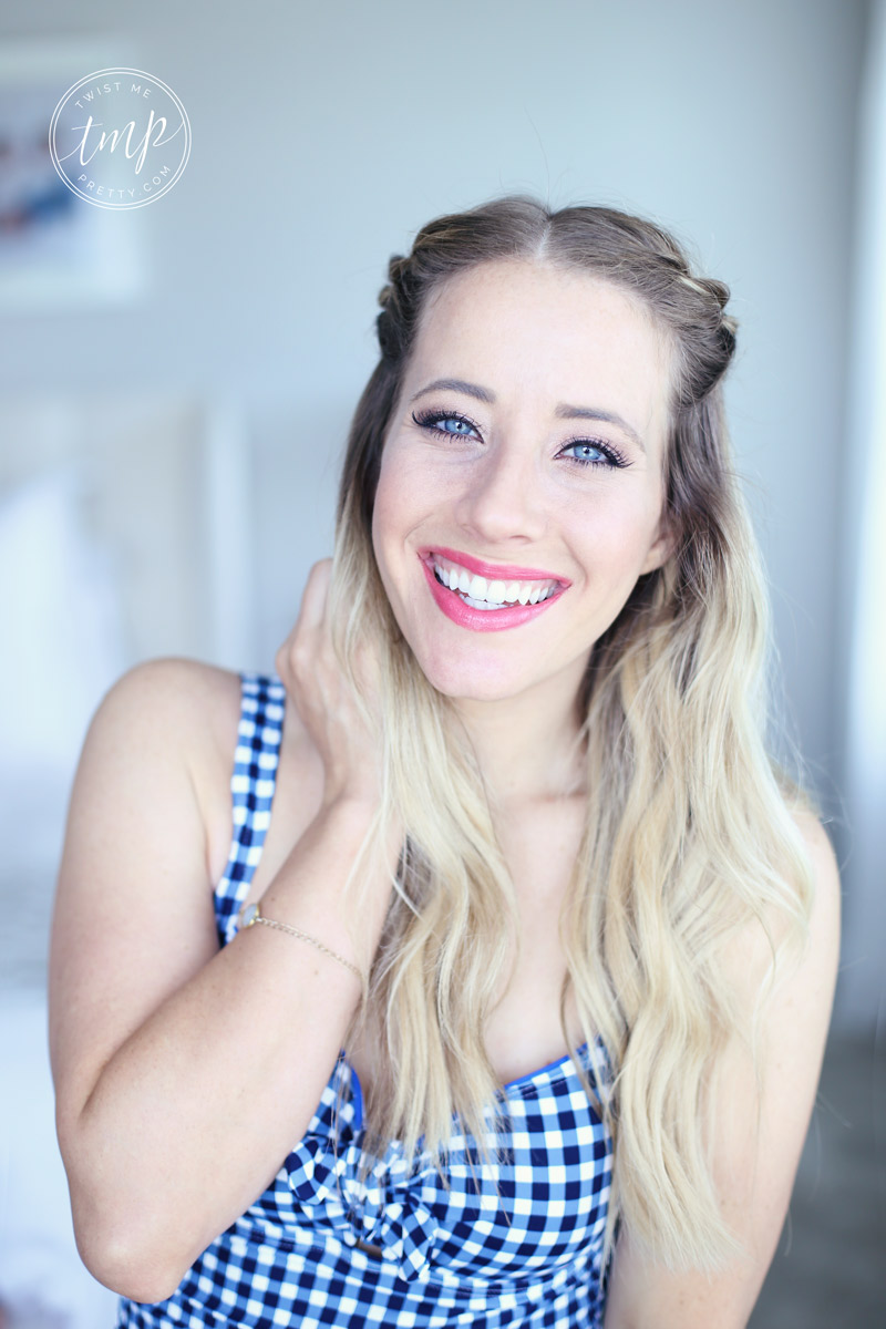 FINALLY!!!!  I’ve had this tutorial filmed for ages and I feel like I’ve been fighting with the world lately!  First, Boston throws my iPhone in the pool and it takes me over a week to recover it and all my passwords and start living normally again.  THEN the bomb was dropped on us that our sitter was stealing from us.  Like fourth degree felony stealing from us.  I’m not even gonna go into because I just… I can’t.  Needless to say it’s been a really really REALLY weird couple of weeks and I’ve pretty much been able to keep only my kids alive.  I guess that’s a feat in and of itself so we’re still making progress ha ha!  But forgive me for being semi absent.  These cute beach twists are my favorite summer hairstyle and I hope you guys enjoy the tutorial!  Don’t forget to watch thru to the end because I share another four quick ways to style it.  LOVE YOU GUYS FOREVVAAA!  Also if you want details on the suit and other ways to look beach ready, check out this post here!