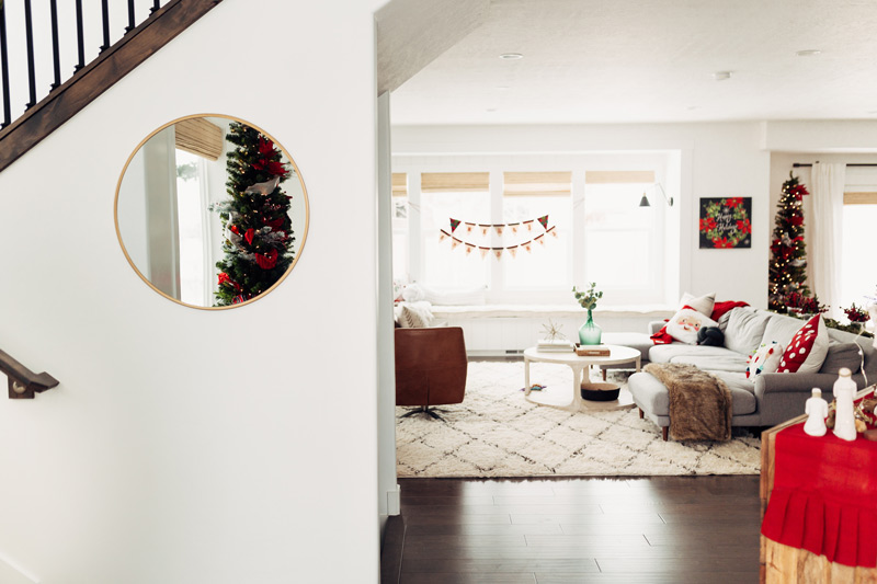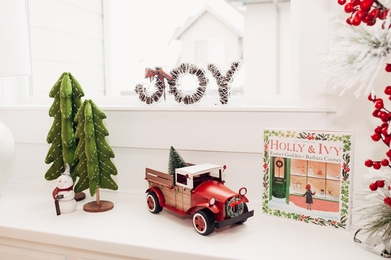 Behind the tree are some classic decorations from Target + a displayed Christmas book. The JOY piece is from Pier 1. Don’t forget to show some love to your cozy little nooks & cranny’s!