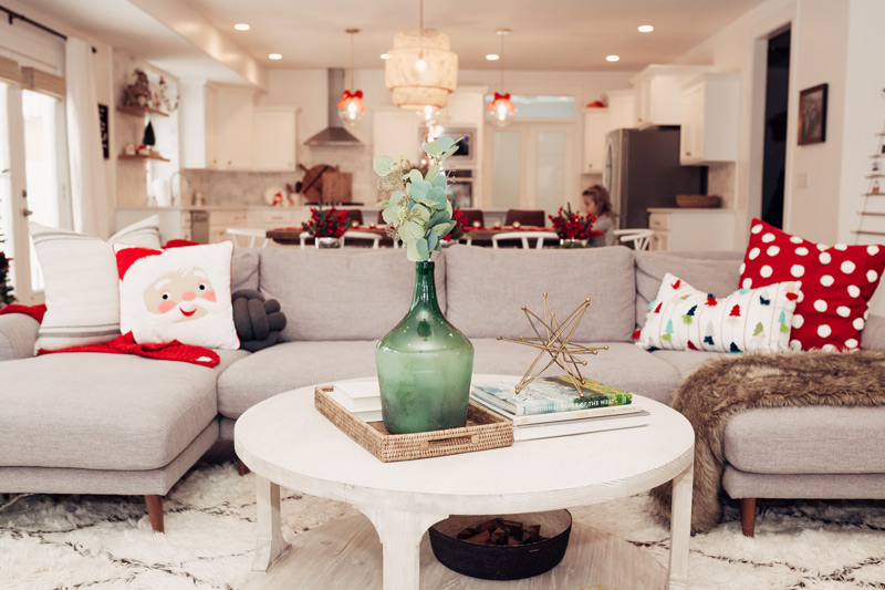 If you need any links on any furniture in the kitchen, head over to my kitchen and dining room reveal! As far as the decor goes, it’s all from Target and the Trees are from Tai Pan. I don’t often splurge on expensive Christmas decorations because you can find the cutest pieces on sale either before Christmas or on clearance afterwards!