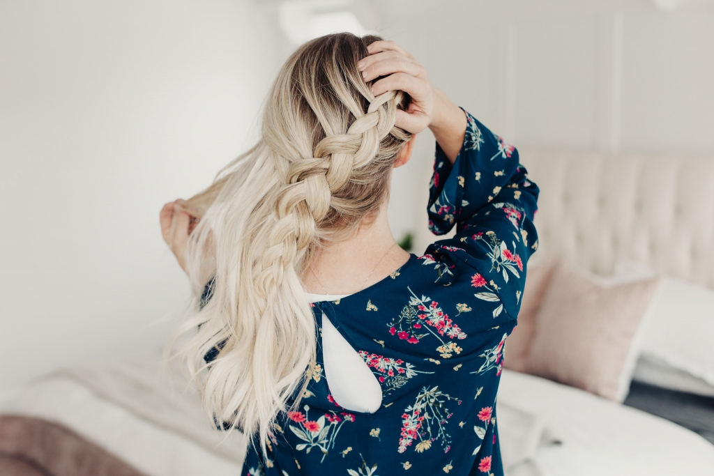 This hairstyle is really easy too!!! It’s a simple dutch side braid, the key is to incorporate just enough pieces from the front that you can get some extra volume when you stretch the braid out.