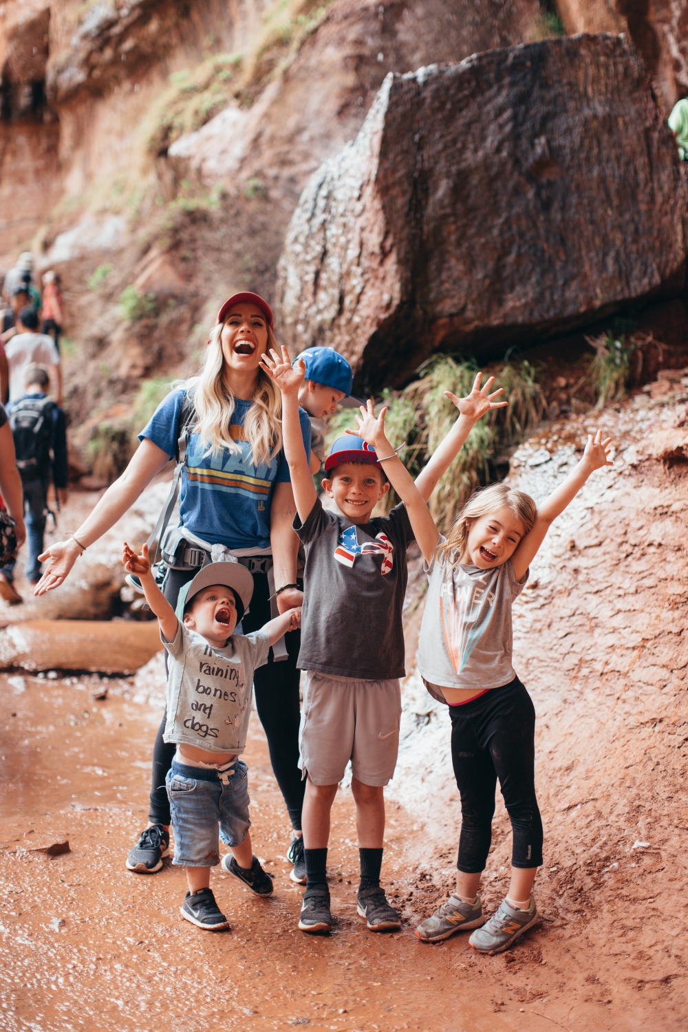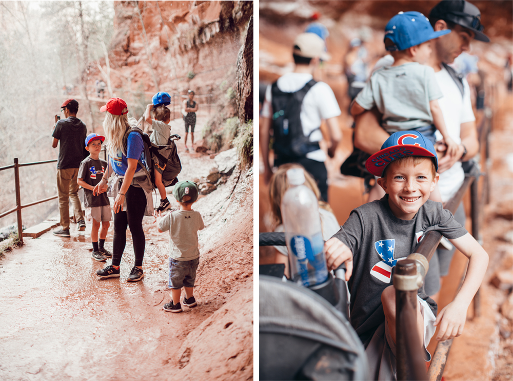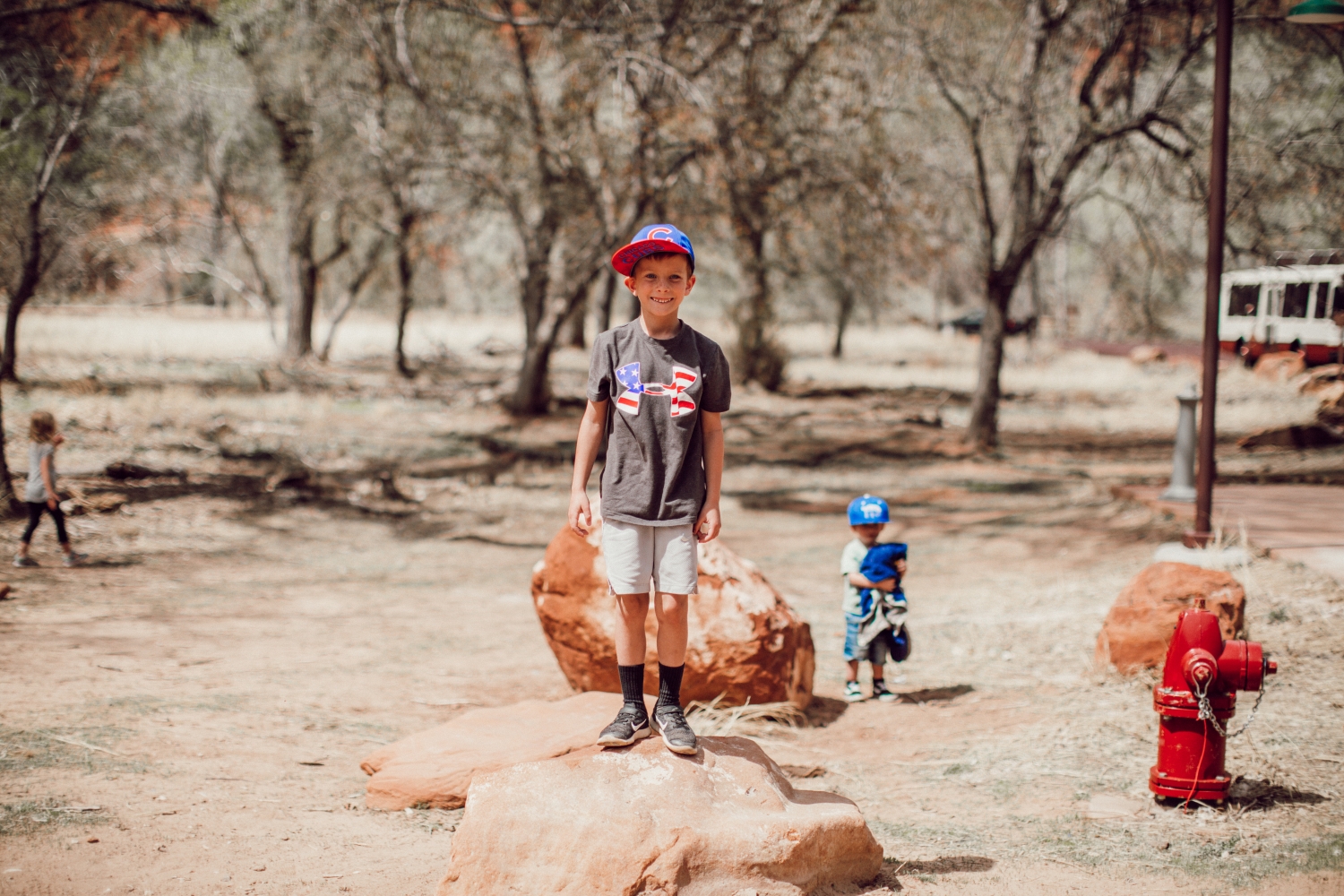 As for Day 2, we thought we’d try and be little adventurers! We drove up to Zion’s National Park and were going to go on the Riverside Walk because it’s one you can take strollers on and we still haven’t invested in two carriers for the boys. The park was so busy with it being Spring Break that we opted to go on the Lower Emerald Pool hike. It was fun, but we wouldn’t do that particular hike again with the kids. It was a little anti-climactic. Still so beautiful but I’d recommend Riverside Walk first!