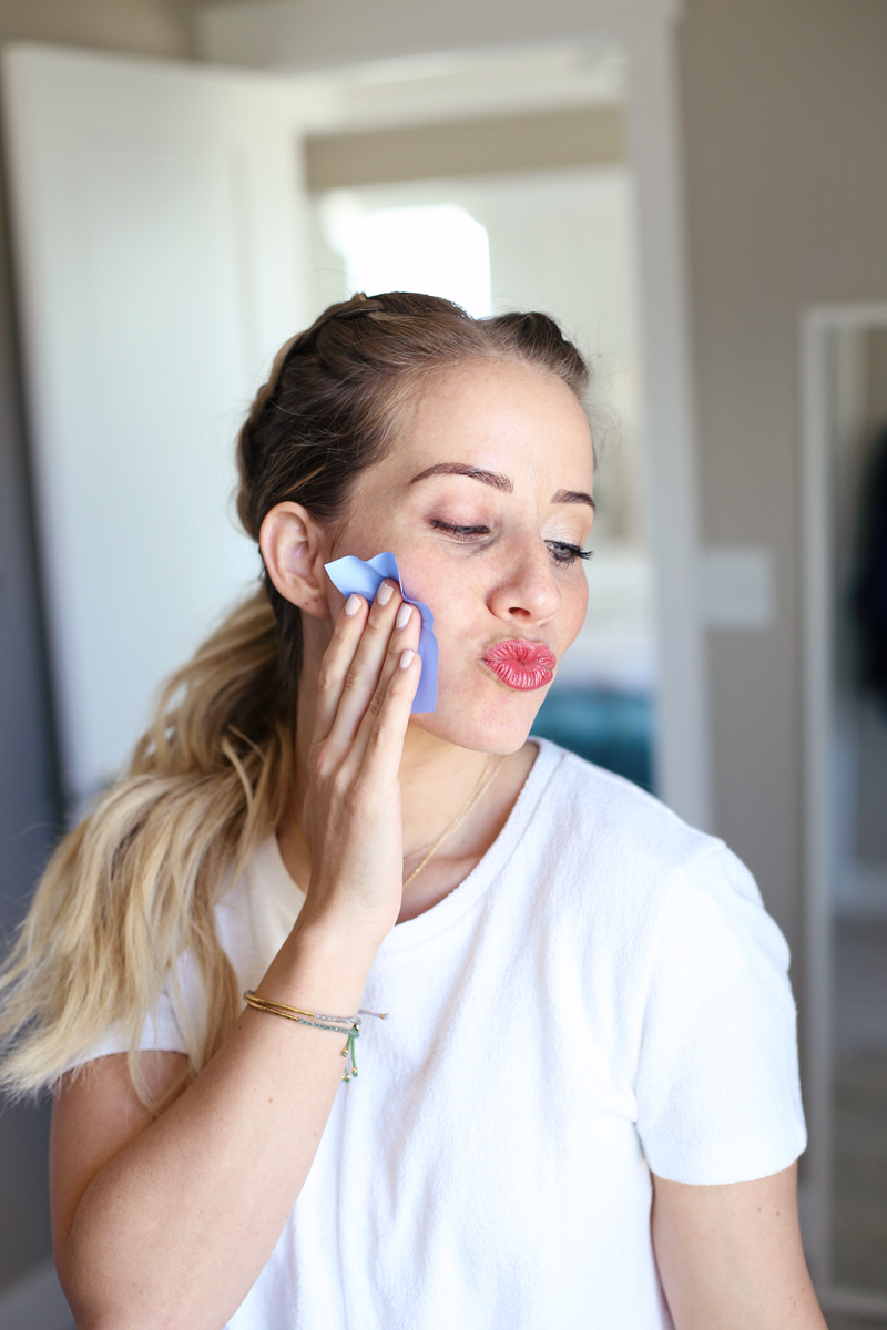 I let the skin air dry and then blotted my cheek with an oil absorbing sheet and laid it down on my table. Now for round two!