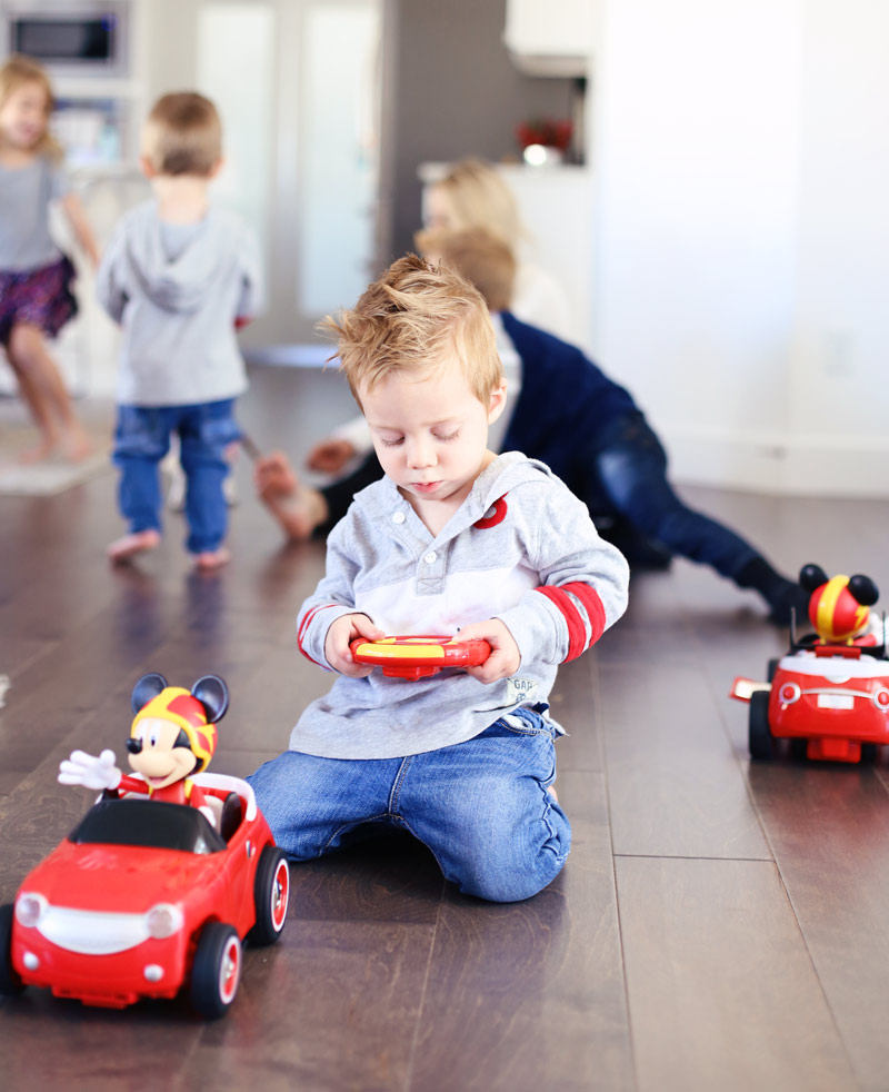 1. Mickey Transforming Roadster RC – Oh man, my boys are OBSESSED!!!!! It’s a little Mickey remote control car that you can use indoors or out, and it lights up and emits sound as it whirls by. If your son or daughter has a fierce love for Mickey + cars, this is going to be a huge hit at your house! Coop would cry every time he’d run Mickey into the wall, it was hilarious, but after a while he got the hang of the controls and even Boston joined in the fun!