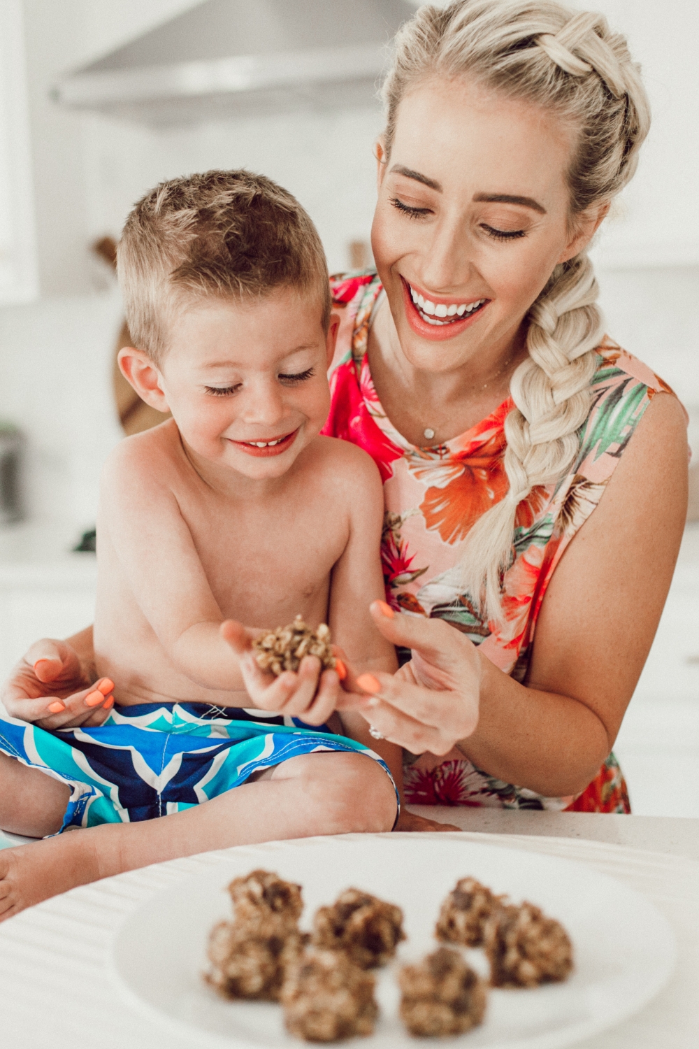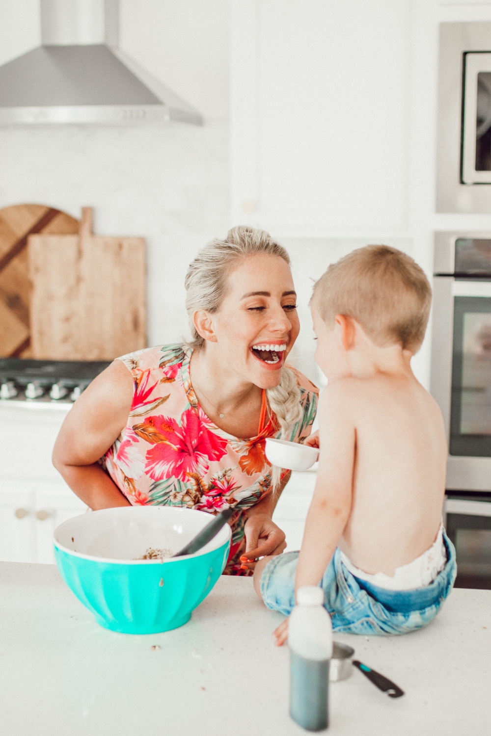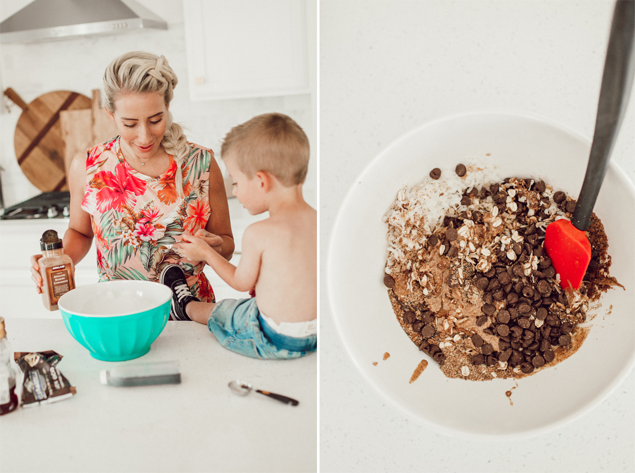 This is such a fun recipe to make with the kids, we hope you love it! Savy and Coop are usually the ones who wanna help me out in the kitchen but Savy was busy with her friends so Coop got me all to himself. Little one-on-one experiences like this are so rare, I soaked up every minute of it. Working in the kitchen though really is such a great opportunity to spend quality time with your kids, don’t dismiss it! Also don’t look now but his feet were SO DIRTY and I didn’t even know, gross gross gross!