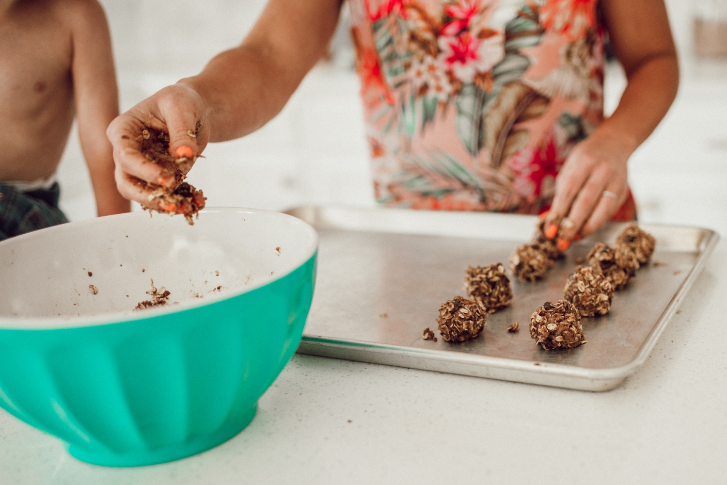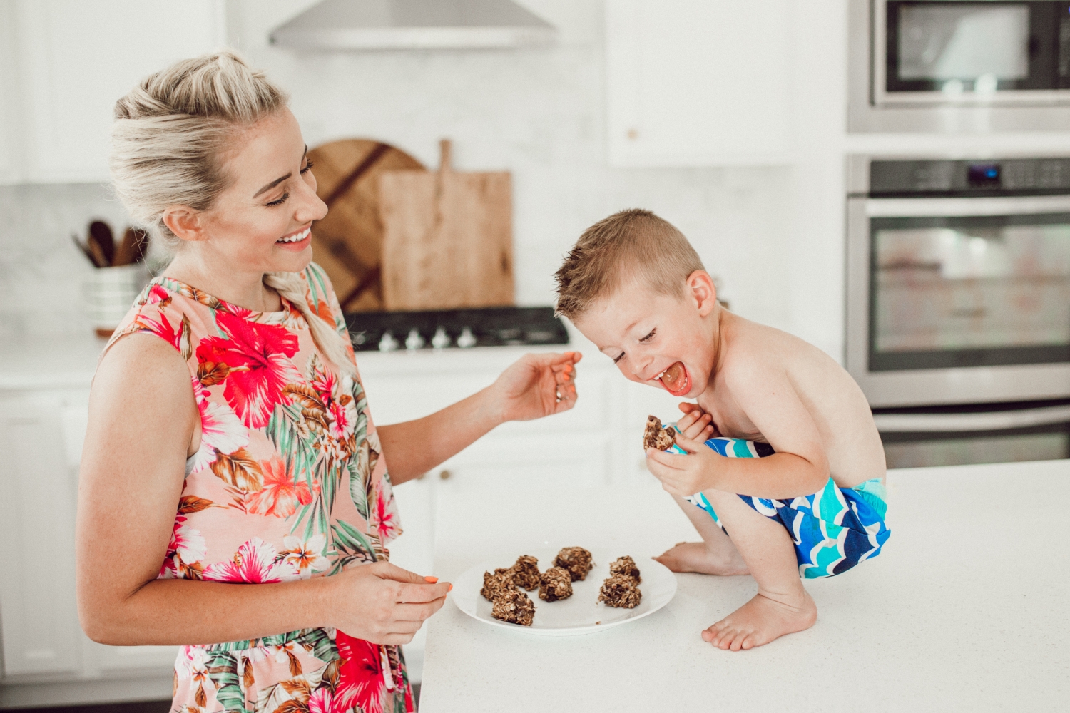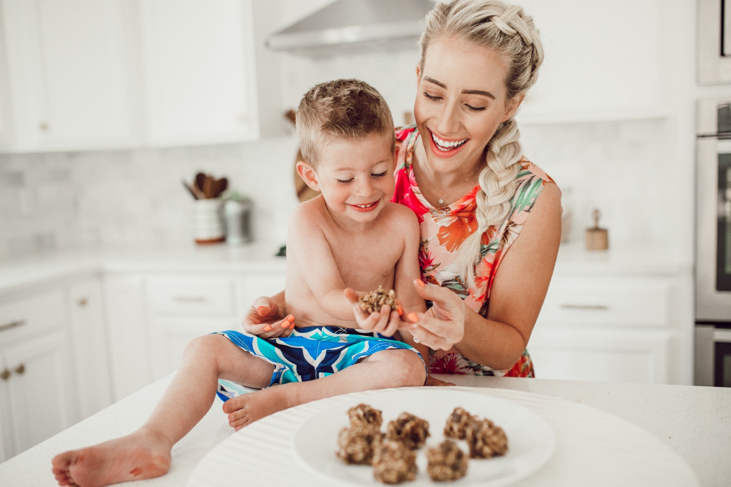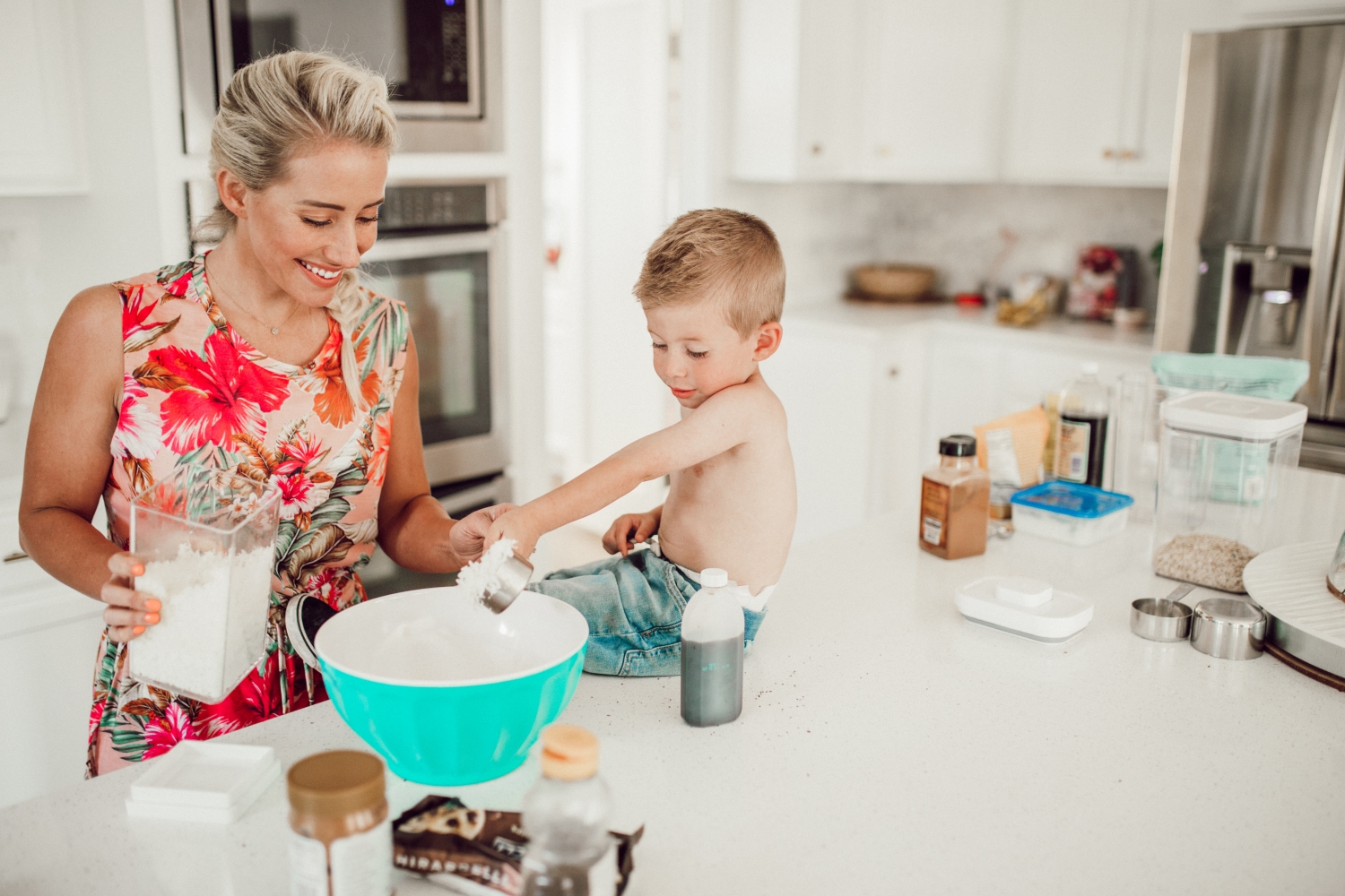This is such a fun recipe to make with the kids, we hope you love it! Savy and Coop are usually the ones who wanna help me out in the kitchen but Savy was busy with her friends so Coop got me all to himself. Little one-on-one experiences like this are so rare, I soaked up every minute of it. Working in the kitchen though really is such a great opportunity to spend quality time with your kids, don’t dismiss it! Also don’t look now but his feet were SO DIRTY and I didn’t even know, gross gross gross!