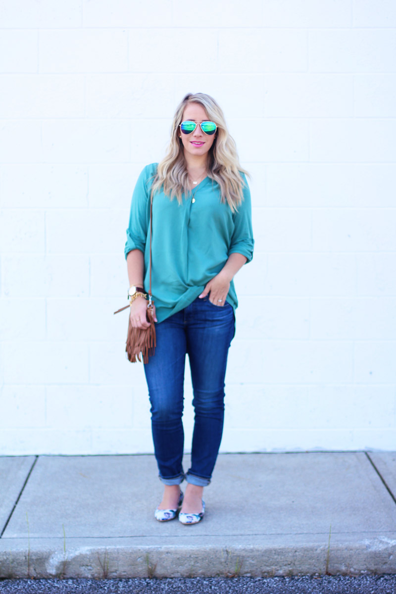 At any rate you need this outfit in your life because it’s perfect and it makes your disheveled self feel put together. The flats? They’re like walking on clouds. And this tunic hides all your baby weight so that makes you happy. And when you’re happy you’re more likely to be the nicest mom in the world. And when you’re the nicest mom in the world the kids are perfect and there are no tantrums and your husband comes home to a clean house and dinner on the table. I’m telling you, it’s the magical outfit. Now if only it could make me remember how to speak to adults using big girl words…