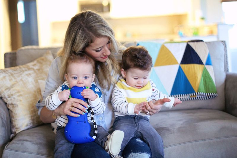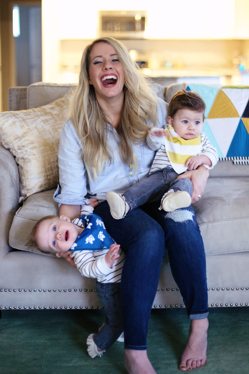 Welcome to my typical afternoon! … 9 times out of 10 though I’ve got a bare face, my hair’s in a messy bun and I’m still in my pjs haha but other than that this is pretty much what it looks like. A few months ago I put together a post about one of my favorite diaper bag inserts and I included a snapshot of what usually goes inside. I had so many emails about the bibdanas and crazy enough the company –Copper Pearl– reached out shortly after with an awesome promo for you guys! If you follow me on snapchat (twistmepretty2) you’ve seen the boys wearing these bibdanas and if I’ve said it once, I’ve said it 100x, they’re THE best. Serious game changer. The boys drool like CRAZY – especially Coop. I was constantly having to change their shirts and when your already having to dress two babies, swapping out shirts every couple hours gets exhausting real quick, not to mention we were running out of clothes! So I went online and happened upon these drool bibs and they’re honestly heaven sent. The bibs have a soft absorbent fleece layer on the inside of them and it keeps their clothes dry. Now instead of swapping out shirts I get to layer these boys up with these super cute bibs! And when they get damp it’s super easy to swap them out. Copper Pearl is giving away 2 sets of their bibs to FOUR winners over on instagram so make sure to hop on over there and enter!