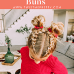 To finish your criss cross hot buns, fluff and loosen the buns on your child’s head for the perfect messy bun look, and spray with hairspray if needed.