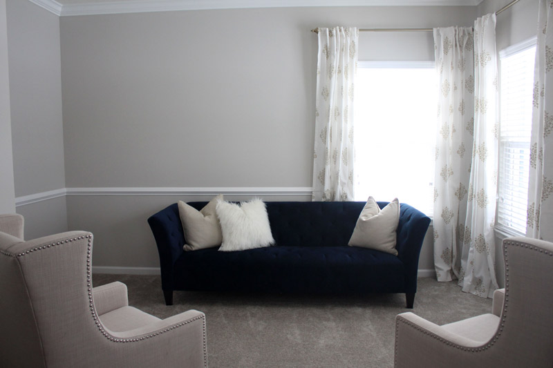 ^^ Alright you designers you. This is the strangest room because of the window placement. I’ve tried the couch every which way and this seems to be the best layout for the furniture. The window cutting that couch in half though is killing me and there’s this awkward space for a piano maybe? that needs to be filled. I’m seriously at a loss with what to do. Back in January I posted a picture on instagram of some amazing floral window treatments that brought in some great color but they were way too heavy after putting them up. I absolutely need to add more pops of color and a floral and cheetah pattern in the pillows. What would you guys do though above that couch? On instagram a lot of you were saying to put a thin table behind the couch and then put up lamps, books, decor etc on the table. I just haven’t liked much and so it’s just sat here. Looking lonely and plain and definitely not me. I need some bold prints and bright colors somewhere, with it all still looking classically elegant! Now who wants to come over and decorate it for me?!