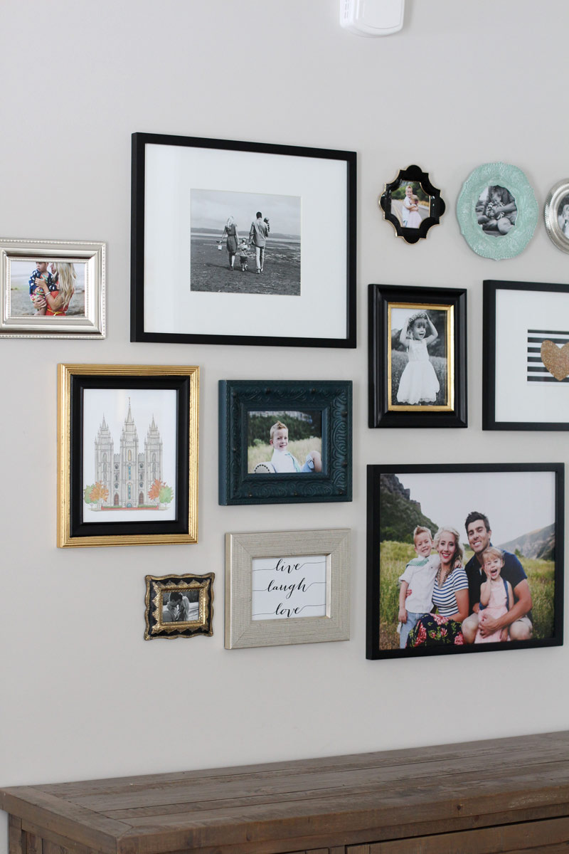 So today I am sharing with you my gallery wall that took many hours of perfecting haha! GALLERY WALLS! The bane of my existence! But they’re oh so pretty aren’t they? We just moved into our home the end of December and with Christmas, birthday week (both kids – same week – do not recommend!) in January and well, maintaining my sanity while being pregnant with twins I haven’t gotten as much done as I would normally like. But we’re alive so I’m counting it as a win! When we first moved in I told Brian I just wanted to get the hallway and that front room decorated so that people thought we had our act together when they stopped by! I’ll show you what I have and you guys are going to have to help me figure out what to do with the rest of the space!