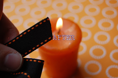 Step 17: For the finishing touch,you’re going to melt the raw edges of the ribbon so they won’t fray in the future. This is the key to making a professional looking bow.Note: I’ve found that most ribbon is made of synthetic fiber (polyester, for example), which melts very well. But once or twice, I had ribbon made from cotton, which totally burned and smoked, and doesn’t melt. So, if its a natural fiber, don’t attempt to melt it. Read the spool of ribbon to see it’s content.
