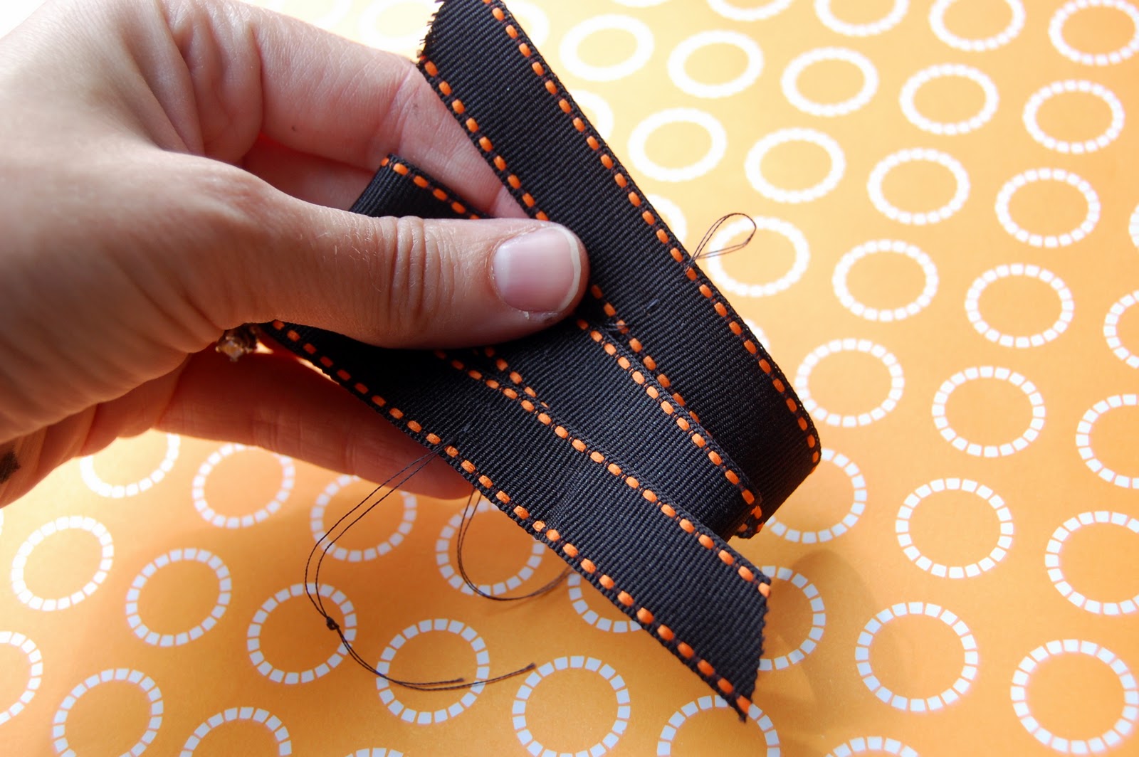 Step 4: After you’ve sewn through all 3 rows of ribbon, pull your thread, leave a bout 2 inches of a thread tail.