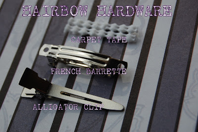 Step 15: Choose the type of clip that you’ll be hotglueing to the back of the bow. You basically have 2 choices, a french barrette or an alligator clip. If you use an alligator clip, you’ll want to glue a piece of carpet tape the the top side (not the side that is straight). Cut a small piece from a roll of carpet tape.