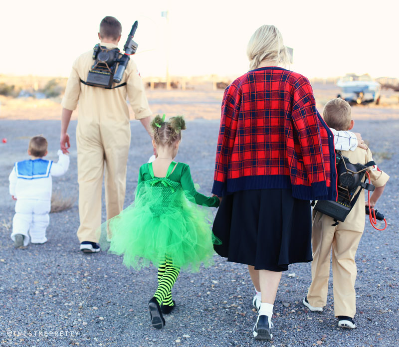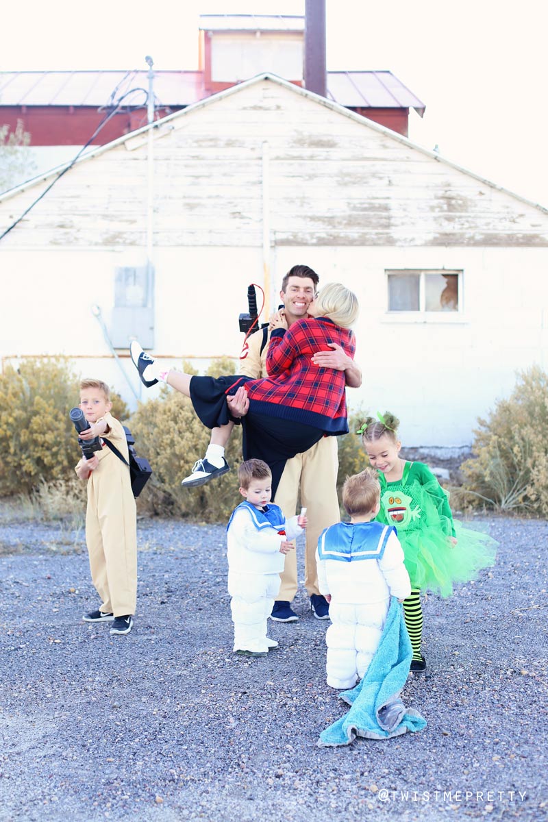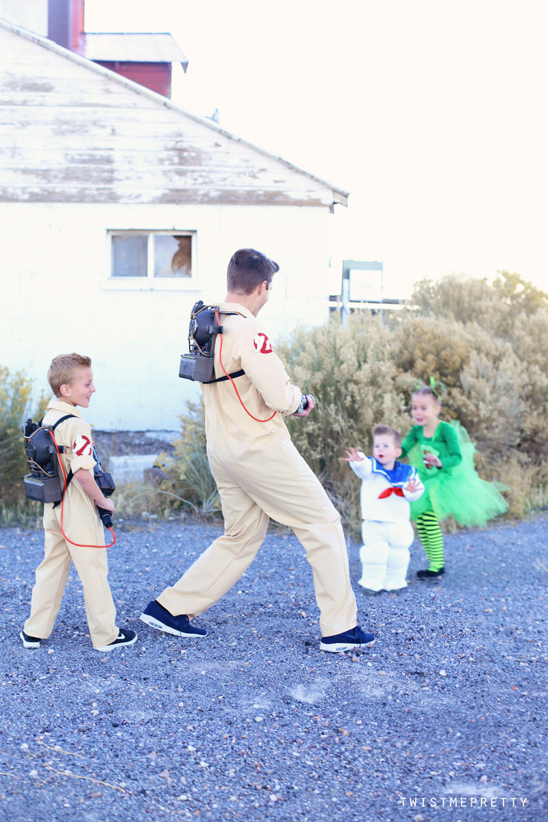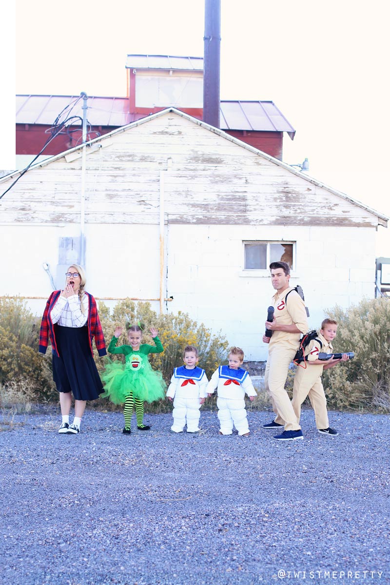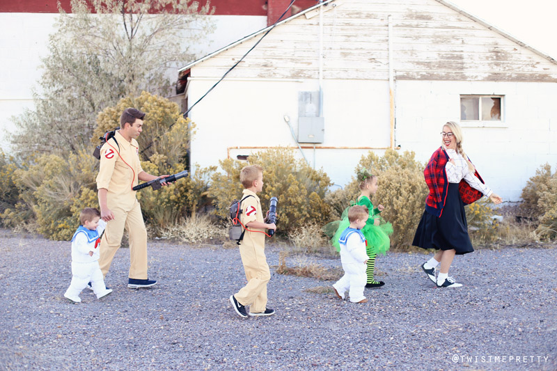 Family Halloween costumes has kinda become my thing… I mean, does that surprise you?! I get that some of you are’t into it… you hate the makeup tutorials and are so over the matching costumes. I gotta be honest though, I feel like I could turn you. If you were a fly on the wall during these pictures and could feel the excitement while we were all getting ready, you’d see just how much fun it is! The joy on all their faces is priceless. This will only last a few more years I’m sure… until Boston refuses to dress up with us cause it’s not cool anymore. So you better believe I’m gonna soak up all the years I have left, where turning into a ghost buster with your Daddy is just about the coolest thing. Or becoming a green slime and chasing your brothers makes you laugh hysterically. It’s those moments as a parent that make all the chaos and preparation worth it. That’s why people spend thousands to take their kids to Disneyland and the Ocean!