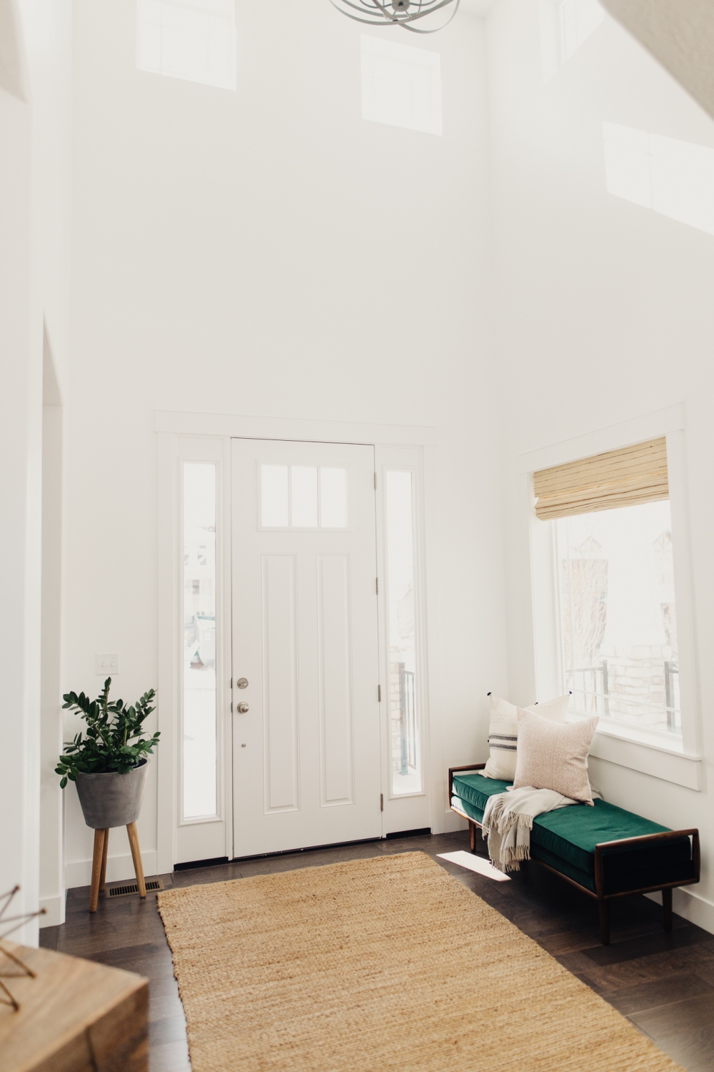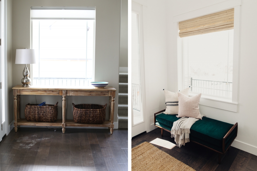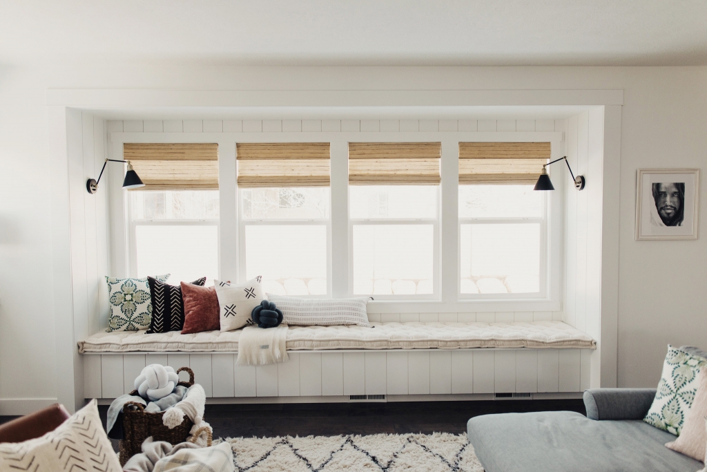 We painted this space white + added a frame around the window. The window treatment from Select Blinds really warmed up the wall and I’m so in love with our Ansa Bench!