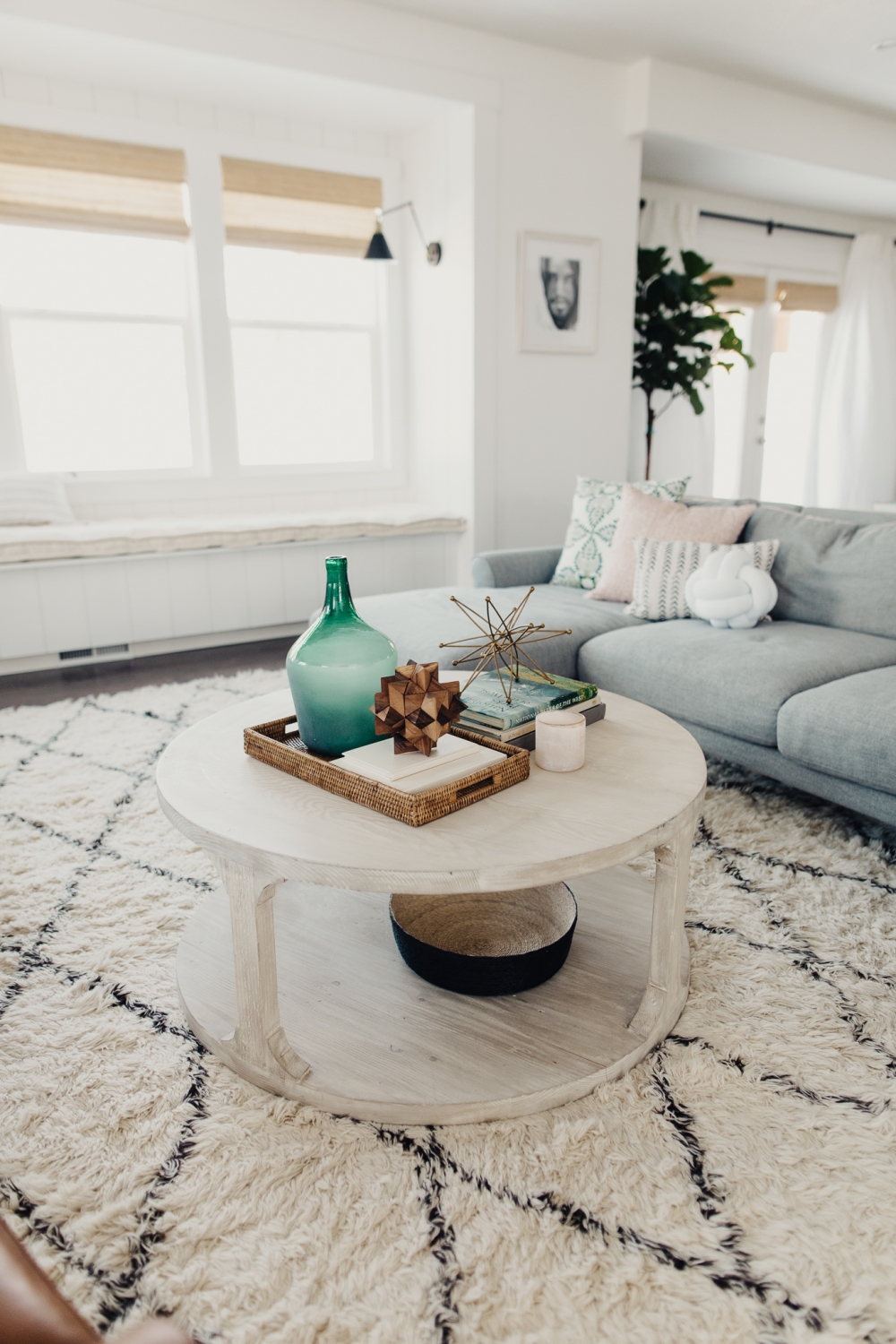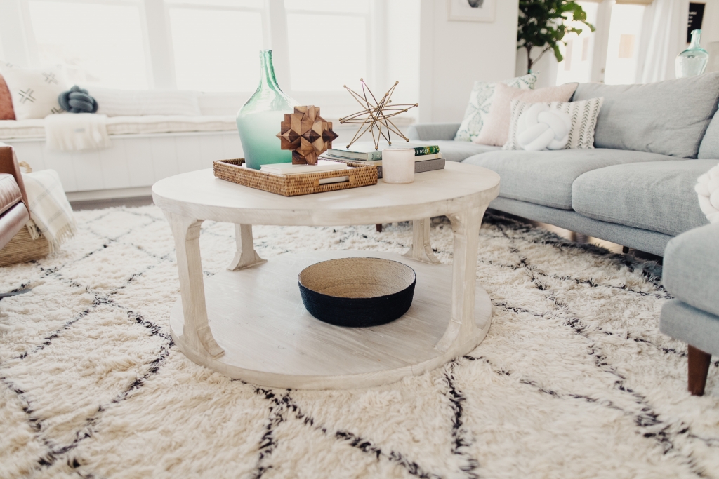 My rug is this one from Rugs USA. It’s the 10×14 size. I’ve gotta tell ya, it’s like having a fifth child haha!!! In the beginning it was SO high maintenance. It would shed all over everything and would fill my Dyson vacuum canister just in pass. I was vacuuming it daily for the first several months because it was just shedding like crazy. And then it eventually just stopped. If you can be patient, it’s a great investment. We had it cleaned recently and it looks brand new. It’s 100% wool so I know it’ll last forever and I love the way it looks!