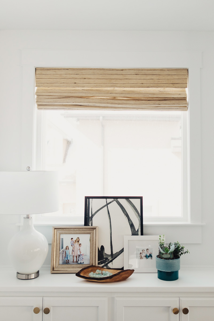 All the window treatments are from Select Blinds! I had purchased some honeycomb top down bottom up blinds when we moved in, figured I couldn’t go wrong with the white and that I’d figure out how to blend everything later. Welllllllllll, Tana convinced me I needed some warmth on the walls, especially since we had just painted everything white. She was so right! We ordered about all the samples we could and landed on the Veronica Valencia Woven Wood Shades in the color Windward Island. These are THE most beautiful shades I’ve ever seen. I was initially nervous to do a woven shade because I was worried about light! I didn’t want the shade to take up the entire window when it was rolled up and I wanted this light and airy feeling, not heavy wood. That’s why we landed on these particular shades because they only take up a few inches at the very top of the window when they’re open and they’re super light and airy feeling. I got the privacy liner in mine because I didn’t want sun filtering through the shades and looking weird. They’re perfect. Brian installed them all with his brother one afternoon and it was pretty hassle free!! Since then, I’ve had several neighbors come over just to take a peek at how beautiful they are.