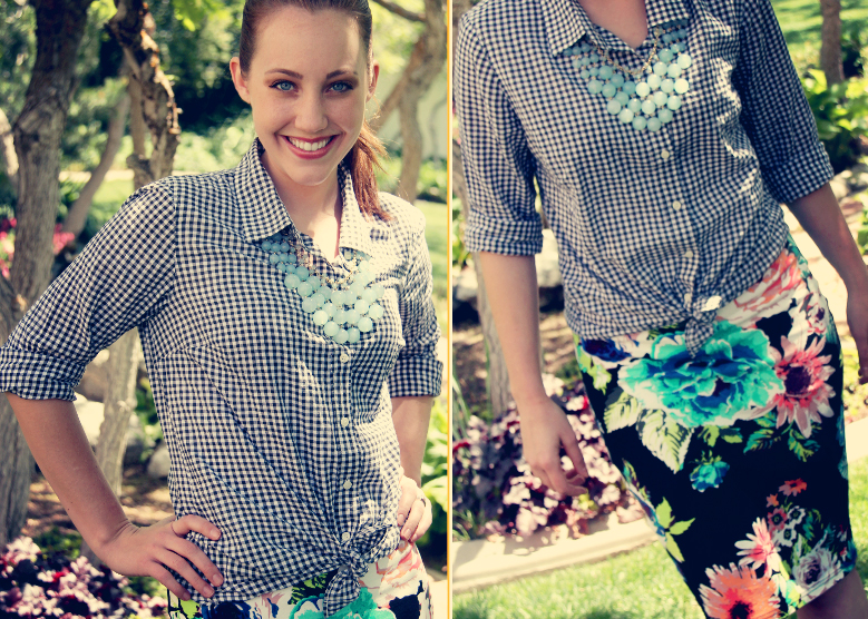 Style tip 4- Tie a long button up in the front and mix prints. Definitely mix prints